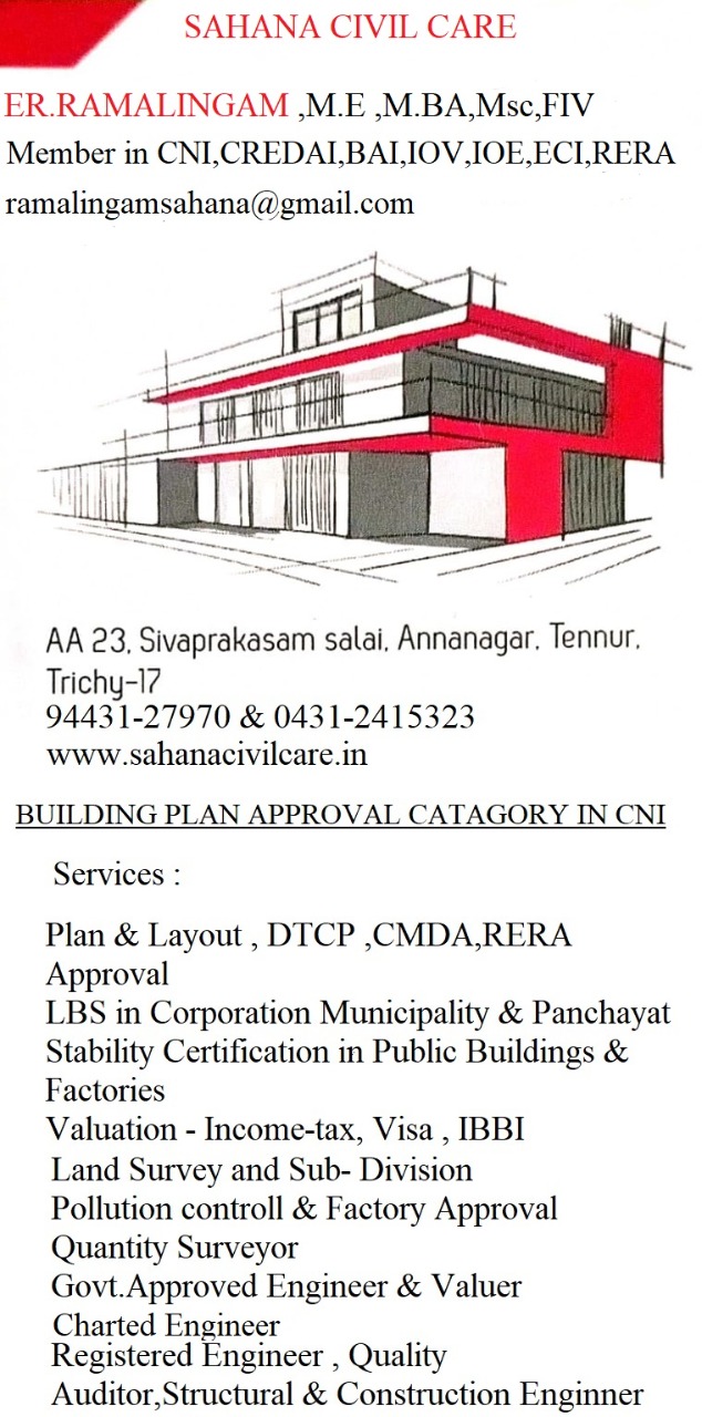 DTCP APPROVAL IN TRICHY Sahana Civil Care in Trichy provides all the necessary resources required for construction purposes, covering a wide spectrum of sectors that consist of building, layout plans, valuation, painting, renovation etc